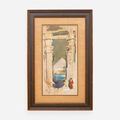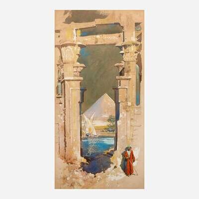 George Wharton Edwards (American, 1859–1950) Man in Red next to Papyrus Columns