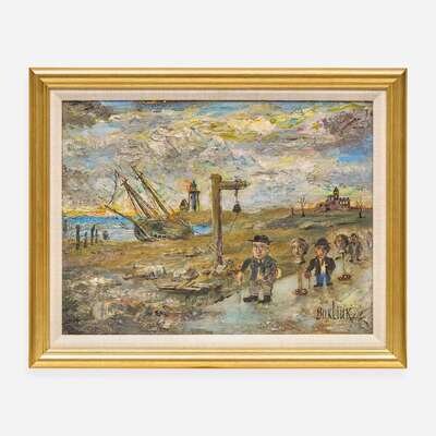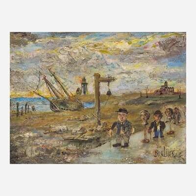David Burliuk (American/Ukrainian, 1882–1967) People Lined up in Gray Landscape