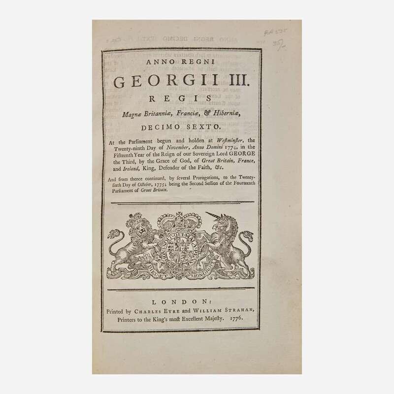 A scarce and important act of Parliament permitting the King to call out militias to put down rebellions--specifically intended to raise troops against the American revolutionaries.