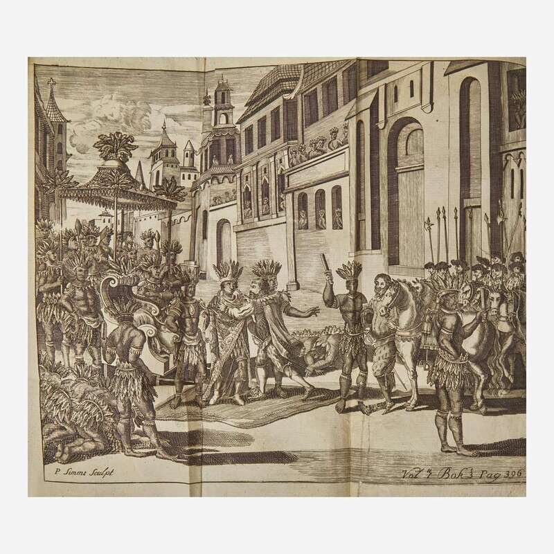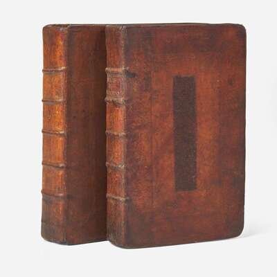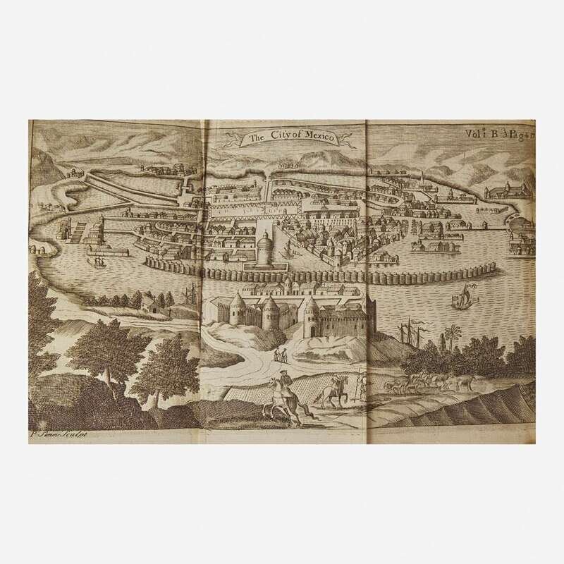 Dublin: Printed by S. Powell, 1727. In two volumes. 12mo. Translated from the Spanish by Thomas Townsend. Illustrated with an engraved frontispiece, three folding plates, and two folding maps. Contemporary full paneled brown calf, stamped in blind and gilt; split in gutter between frontispiece and title-page in first volume; previous ownership signature in pencil on each title-page; top corner of pp. 97/98 torn and affecting some words. Sabin 86488