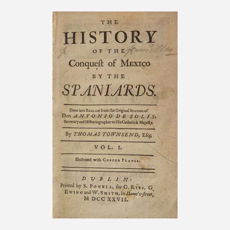 Antonio de Solis y Ribadeneyra (1610-1686) was a Spanish dramatist turned historian, and is considered one of the great writers of Spanish Baroque literature. This work, which first appeared in English in 1724, was extremely popular in both Europe and the New World. It remained the most important European source on Latin American history up through the nineteenth century.