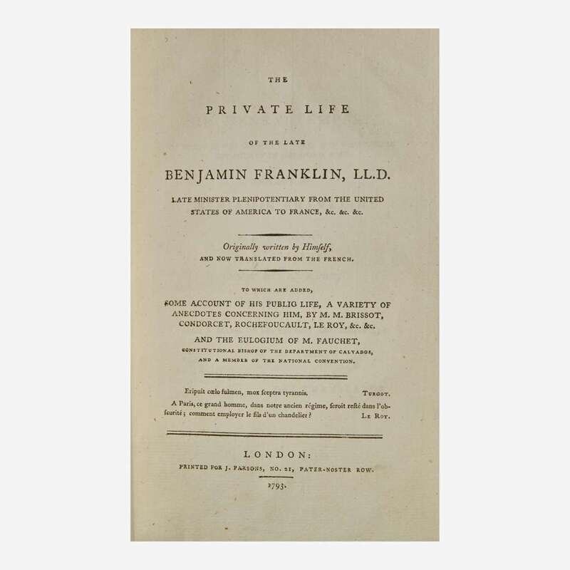 A Fine Copy of the First English-Language Edition of Benjamin Franklin's Autobiography