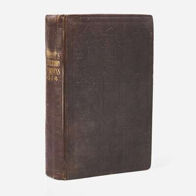 Washington (D.C.): Gales and Seaton, 1845. First edition, Senate issue. 8vo. (iii), 693, (2) pp. Illustrated with 23 lithographic plates and two (of three) folding maps (folding map normally found in rear pocket wanting, as usual). Publisher's brown cloth-covered boards, stamped in blind and in gilt, split in cloth in front joint; scattered foxing and offsetting to text and plates; contemporary inscription on front paste-down; pp. 164-173 sprung. Howes F 370; Sabin 25845; Streeter Sale VI: 3131; Hasse, p. 31