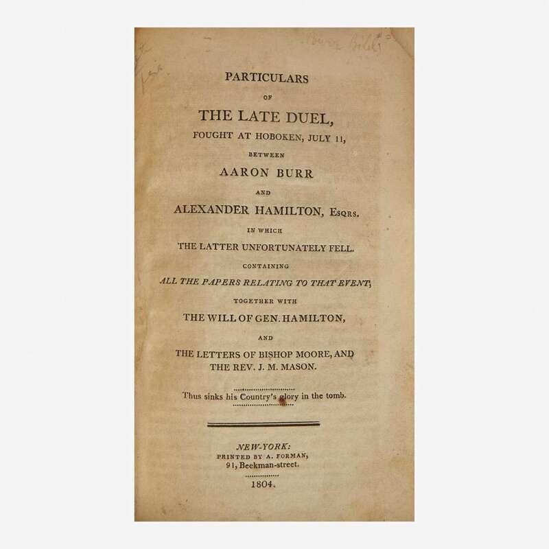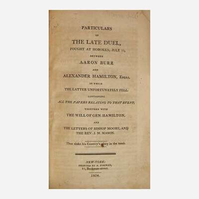 [Americana] (Hamilton, Alexander) Particulars of the Late Duel, Fought at Hoboken, July 11, Between Aaron Burr and Alexander Hamilton...
