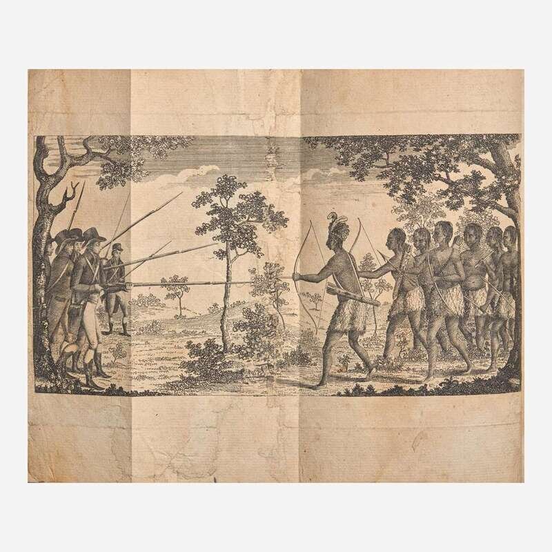 Brooklyn: Printed by Grant & Wells, (1810). First edition. 8vo. (vi), 176, (1) pp. Folding frontispiece as issued, and extra-illustrated with an additional 15 engraved plates (one in color), as well as two additional folding maps, some plates with tissue guards. Three-quarter brown morocco over marbled paper-covered boards, corners and spine-ends lightly rubbed; marbled edges, matching marbled endpapers; front free endpaper largely detached; scattered foxing to text and plates, light offsetting from plates. Howes T-370; Sabin 97192