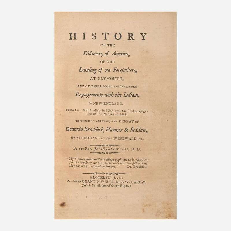 [Americana] Steward, Rev. James (Henry Trumbull, Jr.) History of the Discovery of America, of the Landing of our Forefathers, at Plymouth, and of Their Most Remarkable Engagements with the Indians, in New-England...