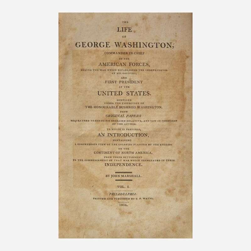 First edition of John Marshall's magisterial biography of George Washington, including the scarce and complete atlas volume. Jared Sparks states that "after the able, accurate and comprehensive work of Chief Justice Marshall, it would be presumptuous to attempt a historical biography of Washington."