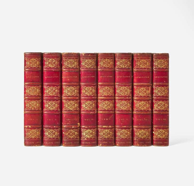London: C. Whittingham for John Sharpe, 1803. In eight volumes. From The British Classics series. 12mo. Illustrated with an engraved frontispiece and title-page in each volume, as well as numerous engraved plates. Full contemporary straight-grain red morocco, stamped in gilt, joints variously rubbed; all gilt edges gauffred; marbled endpapers; a few volumes with very light scattered foxing.