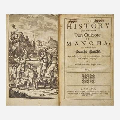 A handsome copy of the first illustrated edition of Don Quixote in English, and the first edition of John Phillips's translation. John Phillips (1631-1706) was the nephew and godson of John Milton (1608-74), and his translation is only the second into the English language following Thomas Shelton's in 1612 (part one only) and 1620 (first complete edition).