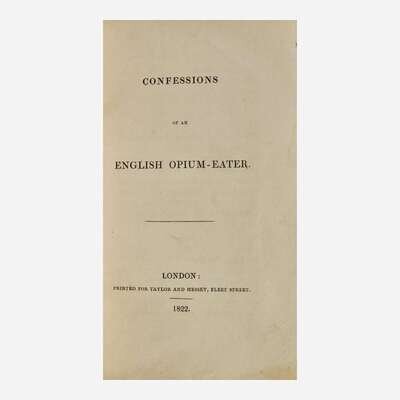 A lovely first edition of Thomas De Quincey's autobiography chronicling the effects of his laudanum addiction, the most famous account of drug addiction in English literature. First published by De Quincey in the London Magazine in September and October, 1821.