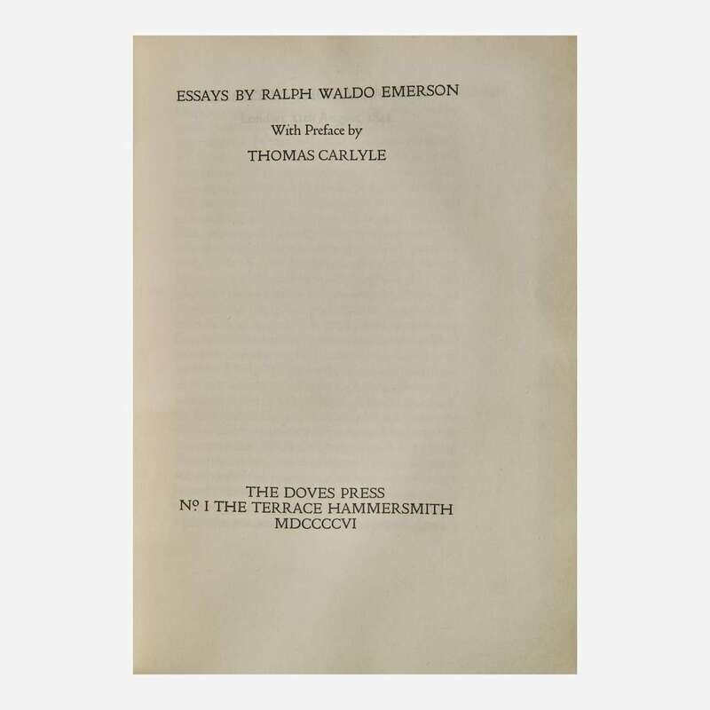 Hammersmith: The Doves Press, 1906. First and limited edition, one of 300 copies printed. 8vo. 311, (1) pp. Preface by Thomas Carlyle. Text printed in red and in black. Publisher's full limp vellum, stamped in gilt, scratch on front board; all edges trimmed. Tidcombe DP8