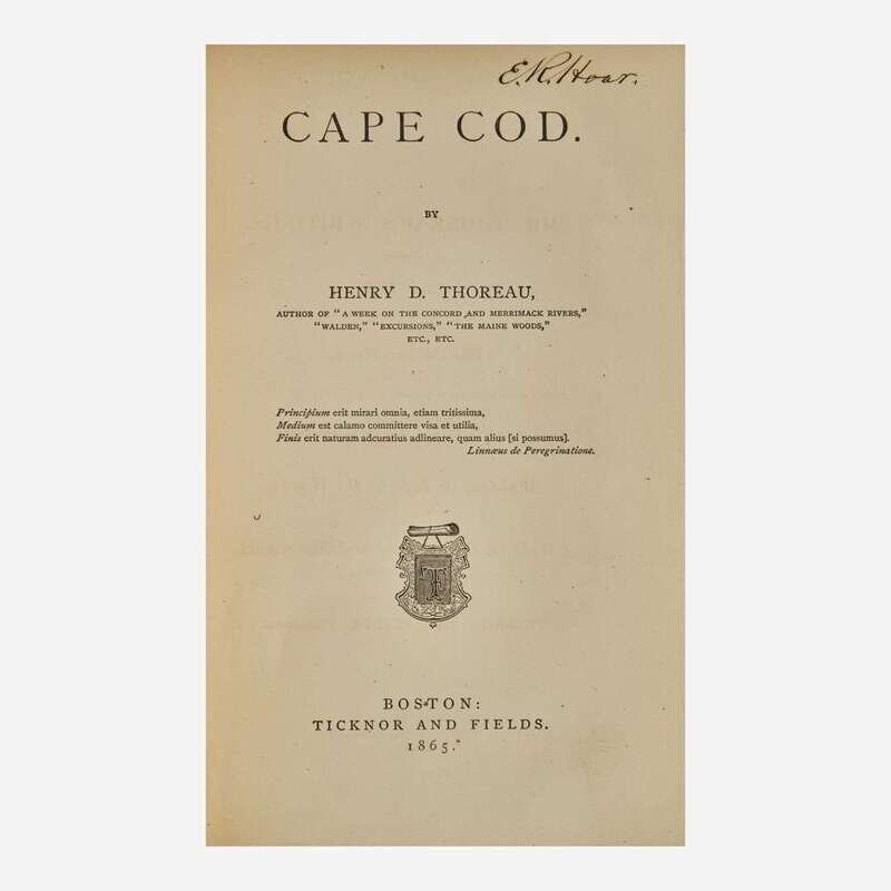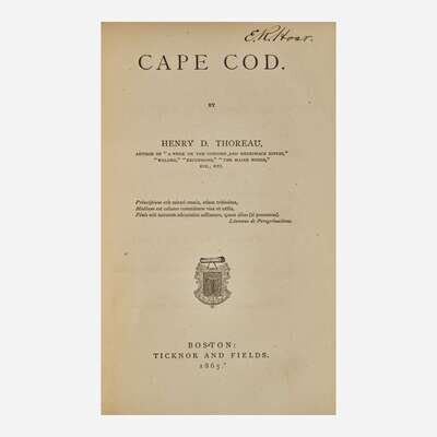 From the library of American politician and United States Attorney General, Ebenezer R. Hoar (1816-95). Hoar served as the United States Attorney General from 1869-70 and was the first to head the newly created Justice Department. In 1846 he was elected to the Massachusetts Senate, and with his father, helped establish the Free Soil Party in the state, that opposed the spread of slavery into the Western territories. He served as Judge of the Court of Common Pleas in Boston, until 1855, and in 1859 was appointed to the Massachusetts Supreme Judicial Court. In 1871 he was appointed by President Ulysses S. Grant to serve on the five-man commission to settle Civil War claims with Great Britain. His brother Edward (1823-93) was a close friend of Thoreau's, and his sister Elizabeth (1814-78) was at one time engaged to marry Ralph Waldo Emerson's brother, Charles.