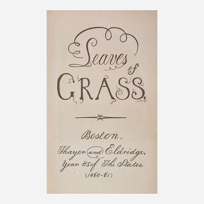 A scarce and handsome third edition of Whitman's Leaves of Grass. This binding is preceded only by the rare advance review copies bound in brown wrappers.