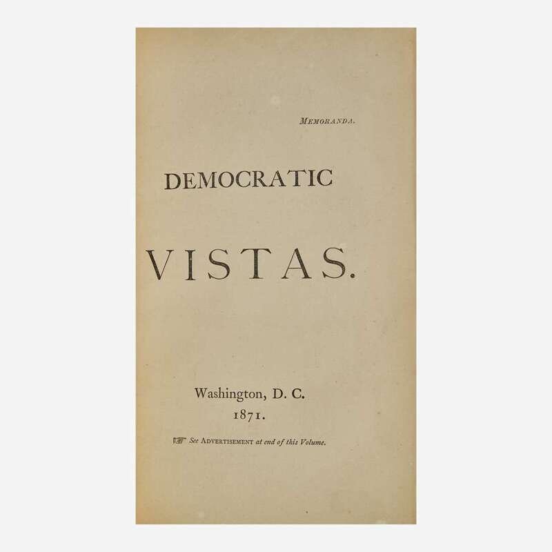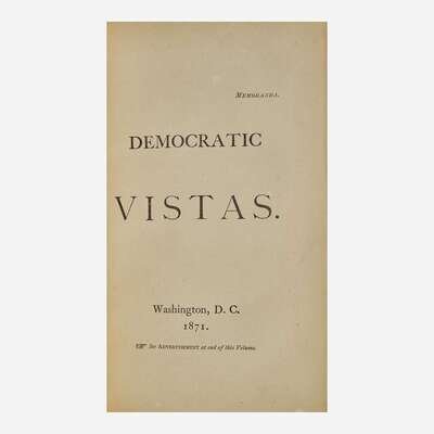 A remarkably well-preserved and unopened copy of Whitman's prose pamphlet on the spirit of American democracy following the Civil War. Virtually as-new.