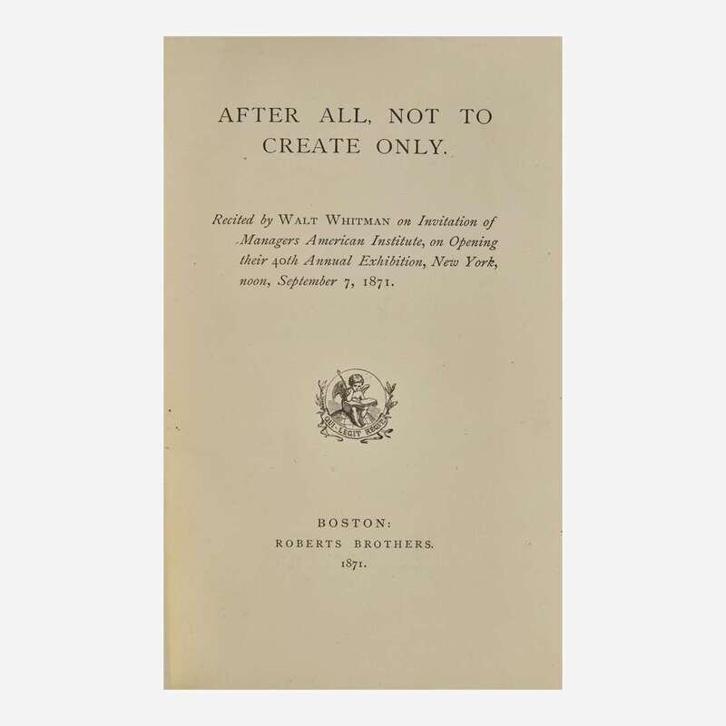 Boston: Roberts Brothers, 1871. First edition in book form. 12mo. 24, (4) pp. Publisher's green cloth-covered beveled boards, stamped in gilt (BAL binding B); brown endpapers; all edges trimmed; first signature very slightly sprung; gutter showing after last page of text. Myerson A6.2; BAL 21405; Wells and Goldsmith, p. 15