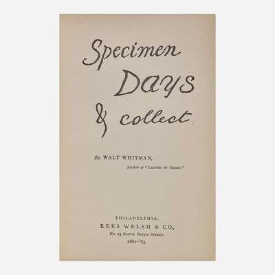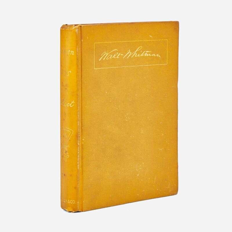 Philadelphia: Rees Welsh & Co., 1882-'83. First edition. 8vo. 376 pp. Illustrated with a portrait of Whitman facing p. 122, tissue-guard wanting. Publisher's mustard-yellow cloth-covered boards, stamped in gilt, boards slightly soiled, small patch of bubbling on front board; all edges trimmed; patterned endpapers. Myerson A11.1.a; BAL 21422