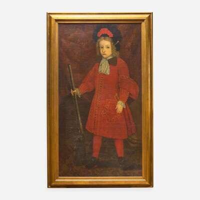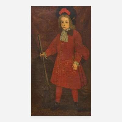 Spanish School 17th / 18th century Portrait of a Young Boy in Red with Gun