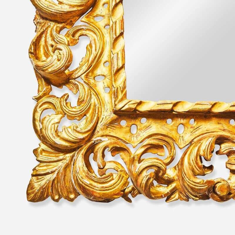The frame featuring perforated acanthus foliage, later mirror plate.