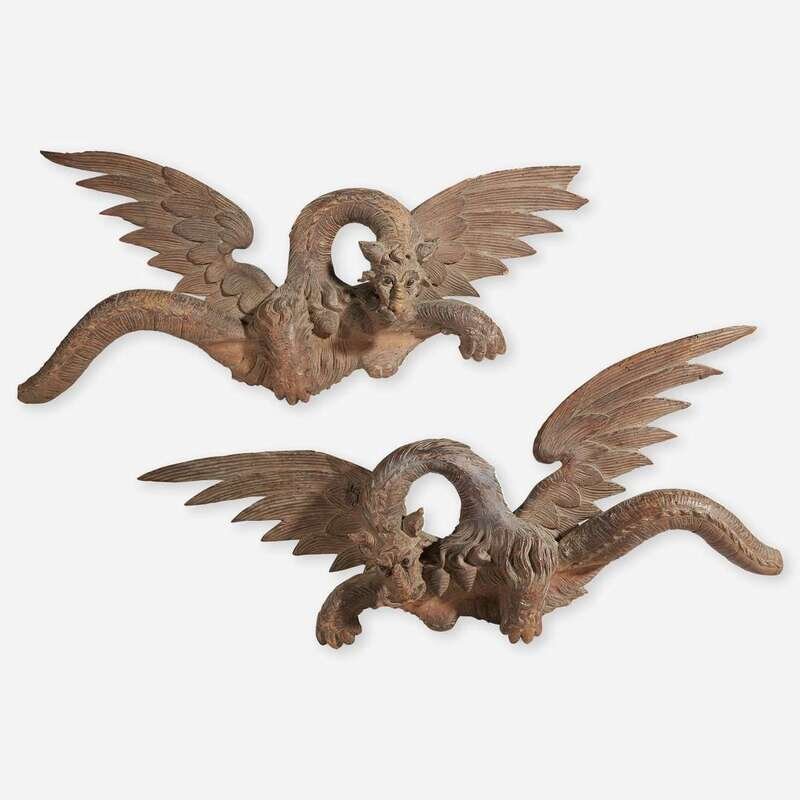 A pair of Italian carved walnut Chimera Probably Florentine, 18th / 19th century