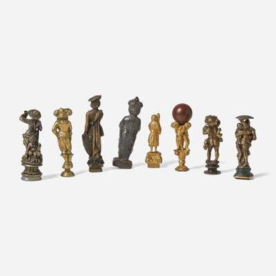 A collection of eight figural wax seals or stamps Continental, probably 19th century