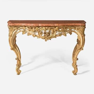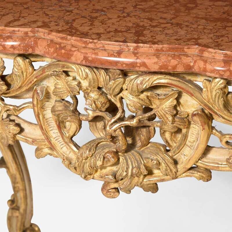 An Italian Rococo giltwood console table with breccia marble top 18th century