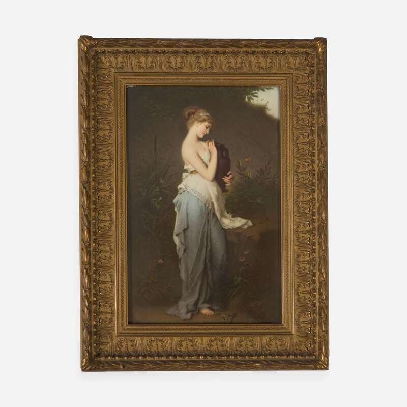 A KPM painted porcelain plaque depicting a Classical lady holding a Lekythos late 19th century