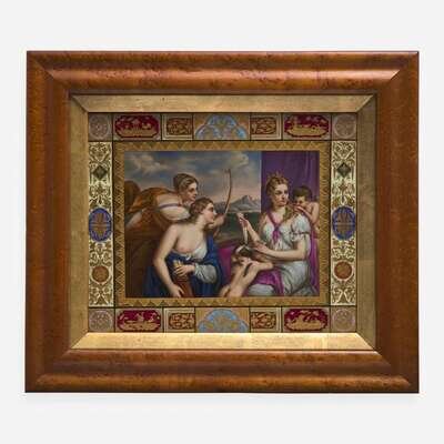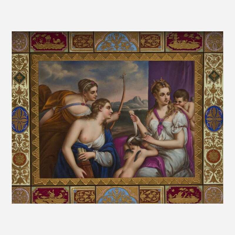 A KPM style painted porcelain plaque depicting Diana with attendants late 19th century
