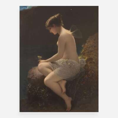A KPM painted porcelain plaque depicting a fairy late 19th century