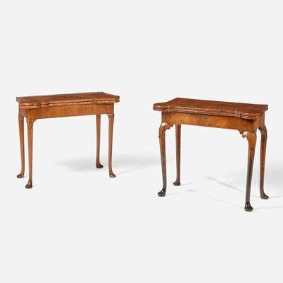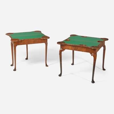 Two Queen Anne inlaid and burl walnut veneered card tables circa 1710