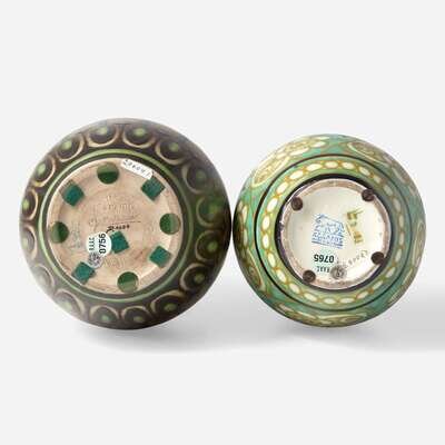 H: 11 1/2 in. Dia: 6 1/2 in. (first, overall), H: 12 3/4 in. Dia: 6 1/2 in. (second, overall)Property from the Collection of Dr. Ellis F. Rubin and Suzanne Borow Rubin