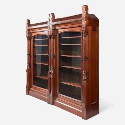 A glazed walnut double bookcase Attributed to Frank Furness (American, 1839-1912) and Daniel Pabst (American, b. Germany, 1826-1910), USA, circa 1875-1885