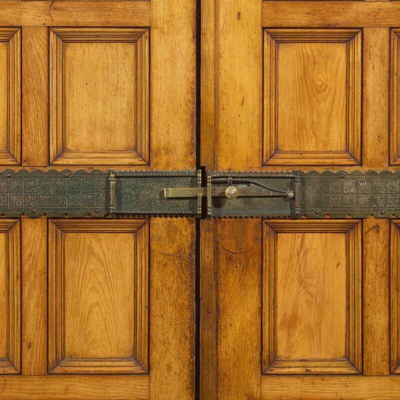 A large English Aesthetic Movement oak wardrobe Attributed to Richard Norman Shaw (1831-1912) & William Eden Nesfield (1835-1888), retailed by Maple & Co. (est. 1841), London, England, circa 1870