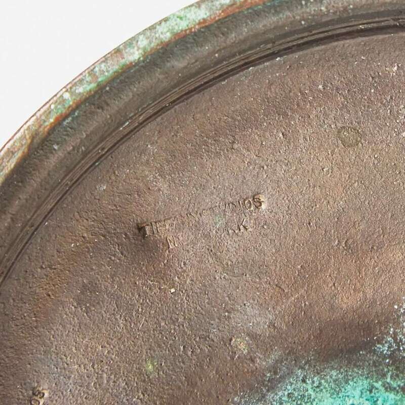 The bowl etch-signed to underside, "1285/ L.C.T. Favrile," the trumpet vase with patinated bronze base, marked to underside, "Tiffany Studios/ New York."