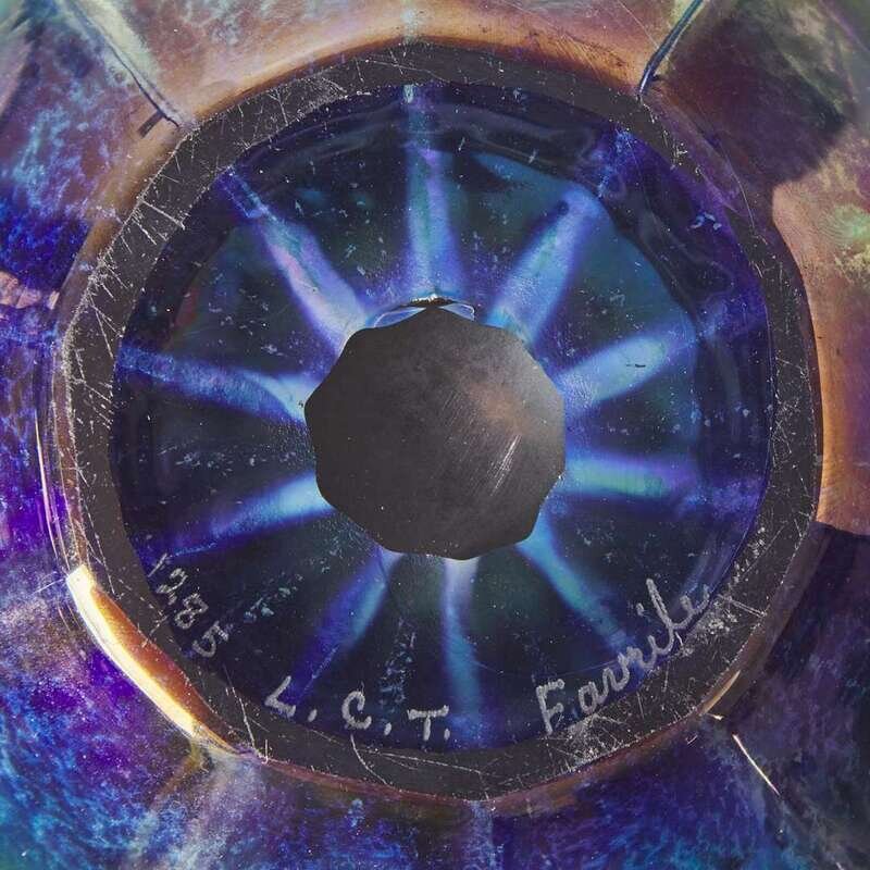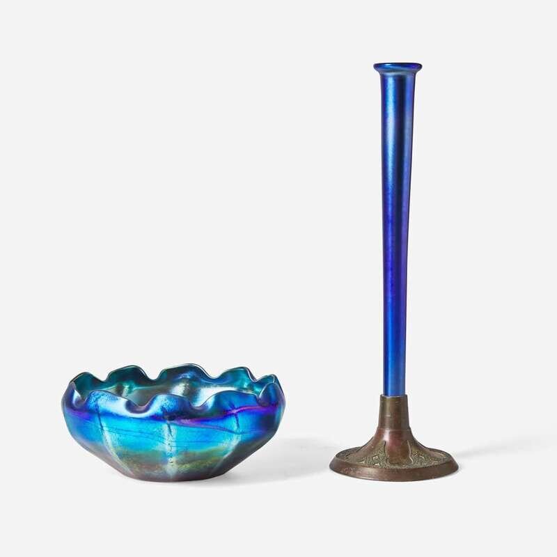 Tiffany Studios (American, active 1878-1932) A Blue Favrile Glass Bowl and Trumpet Vase, New York, NY, early 20th century
