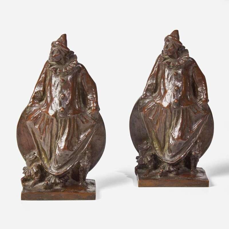 Charles Henry Humphriss (American, 1867-1934) Pair of Pierrot or Harlequin Bookends, Roman Bronze Works (founded 1897), New York, NY, dated, "1912"
