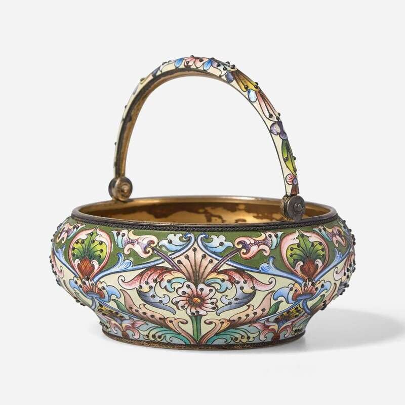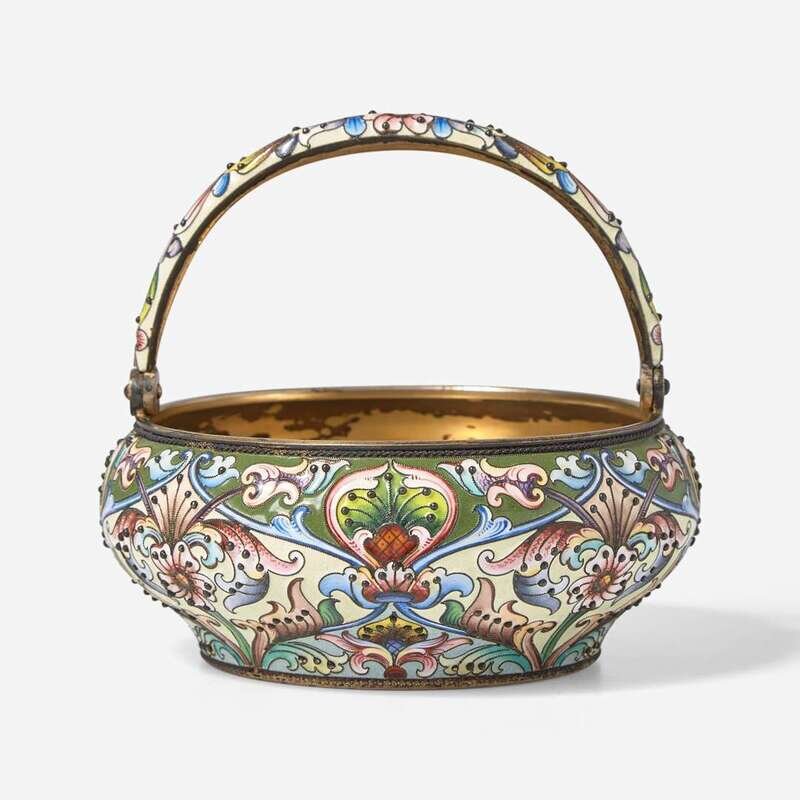 A Russian silver gilt and shaded enamel basket Bearing marks for Maria Semenova, Moscow, 1908-1917