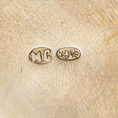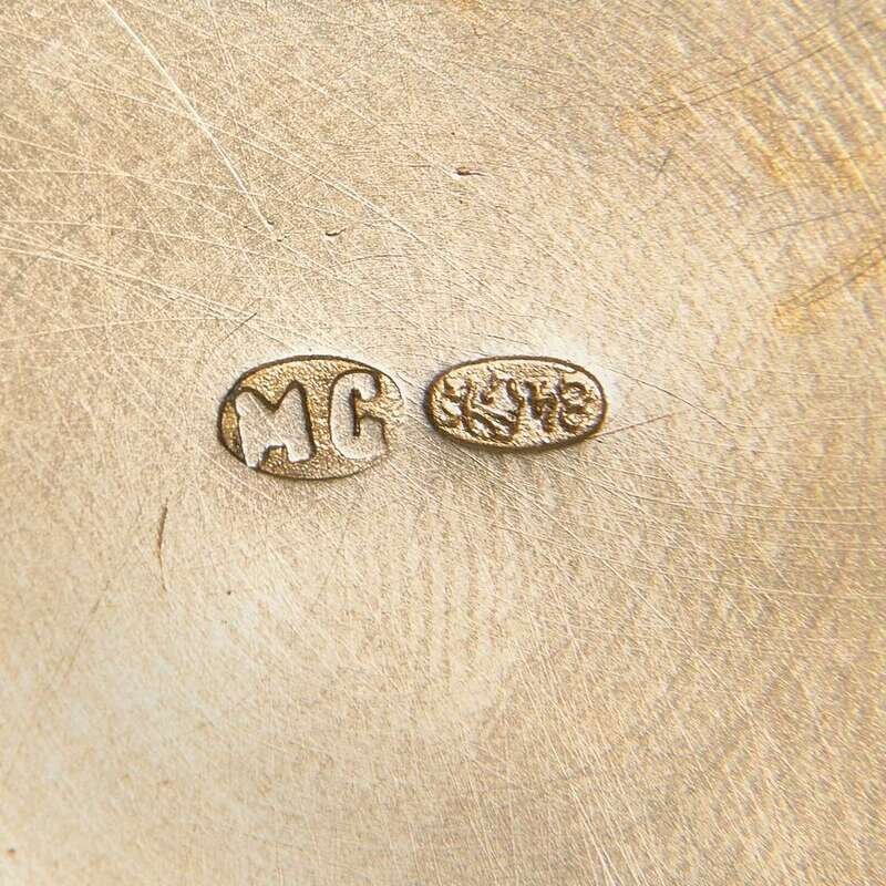 Allover decorated with foliate devices, marked with maker's mark, "MC," and Kokoshnik mark.