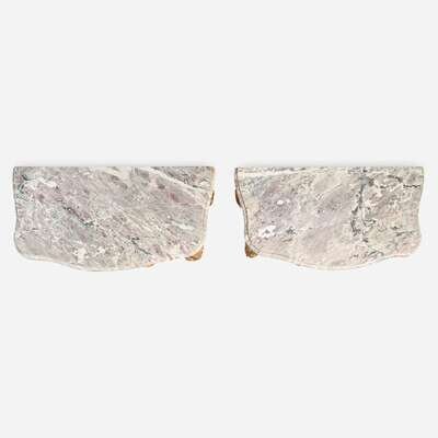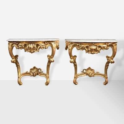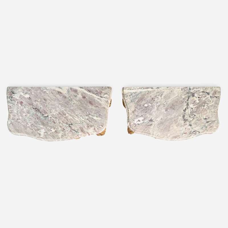 A pair of Louis XV carved giltwood consoles with breccia marble tops 18th century and possibly later