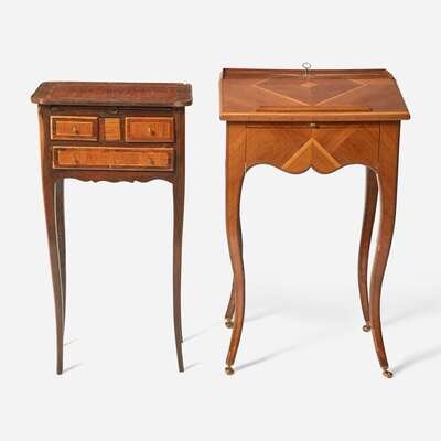 H: 31 1/2 in. W: 19 in. D: 16 in. (table à écrire), H: 30 1/2 in. W: 16 1/2 in. D: 11 1/4 in. (table en chiffonnière)