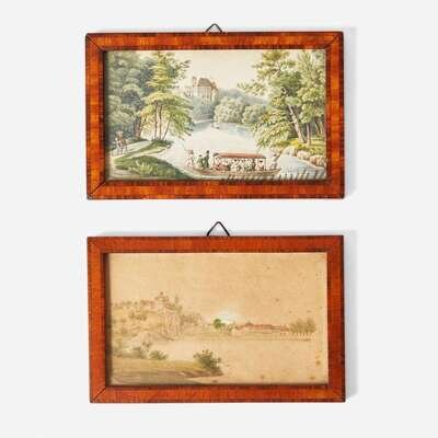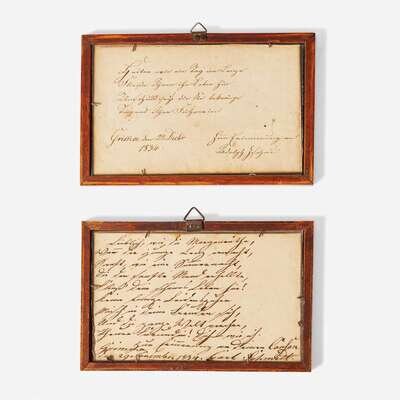 Watercolor on paper, each with German inscriptions visible verso, one signed and dated, "Carl Schmidt" and November 29, 1834, the other dated December 22, 1834; both framed.