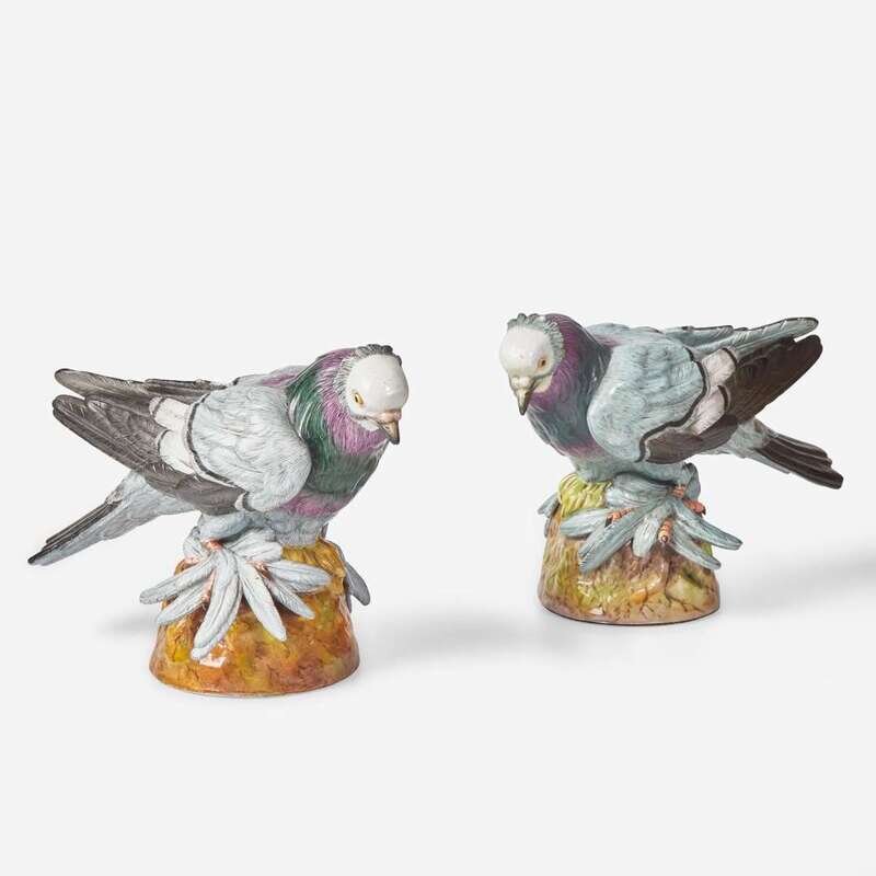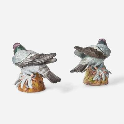 A pair of German porcelain pigeons Probably Sitzendorf, 1884-1902
