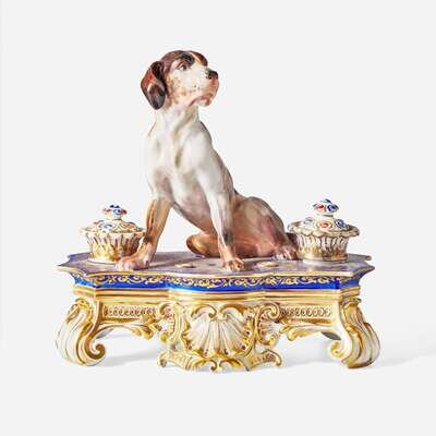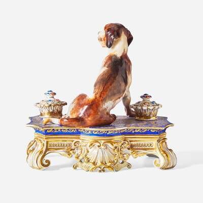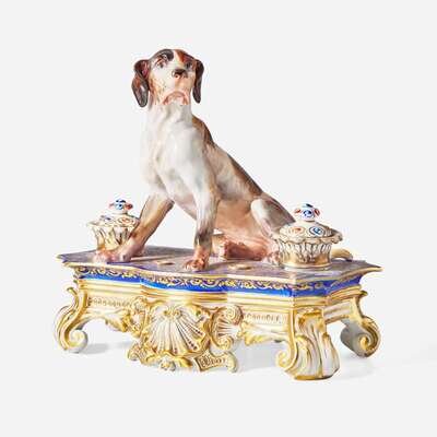 A French porcelain inkstand with hound Jacob Petit (French, 1797-1868), Paris, circa 1840
