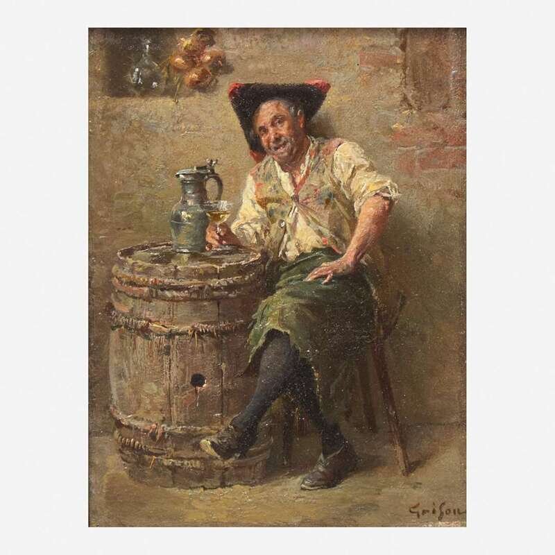François Adolphe Grison (French, 1845-1914) Portrait of a Reveler Drinking