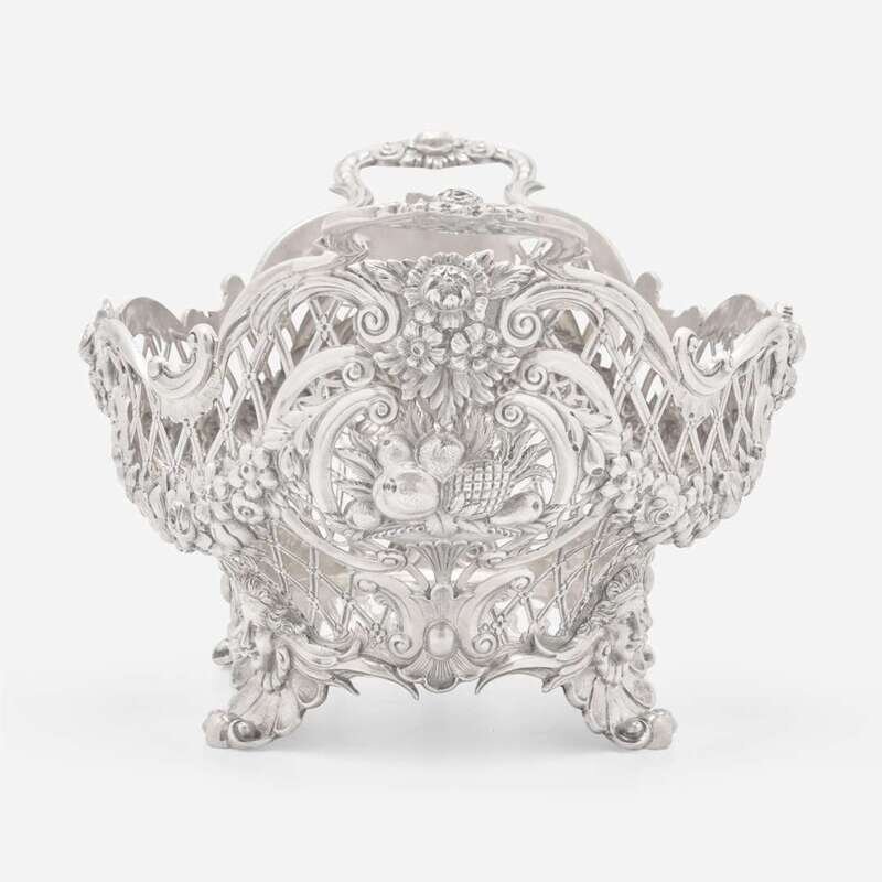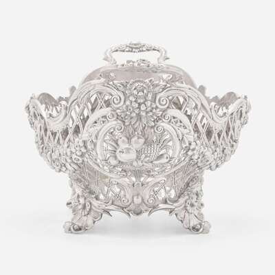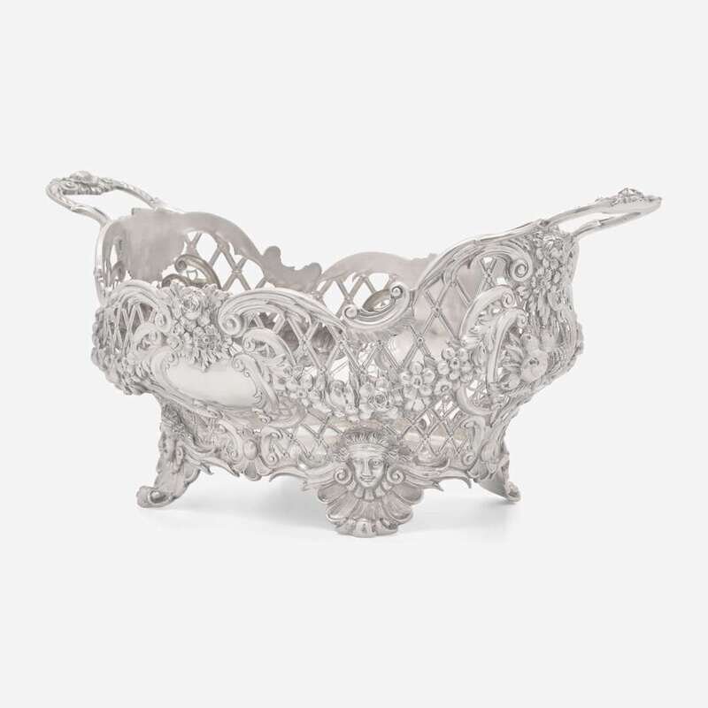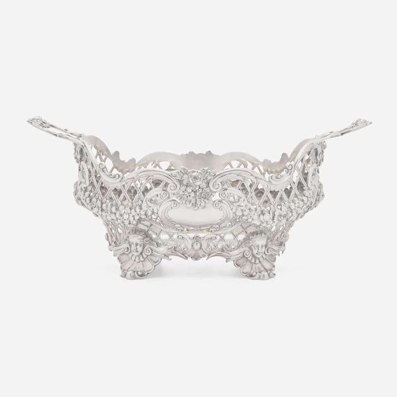 An Edward VII sterling silver reticulated centerpiece basket Maker, "HB," London, 1902