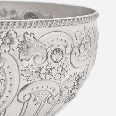 A Victorian sterling silver repoussé punch bowl William Hutton & Sons Ltd., London, 1899