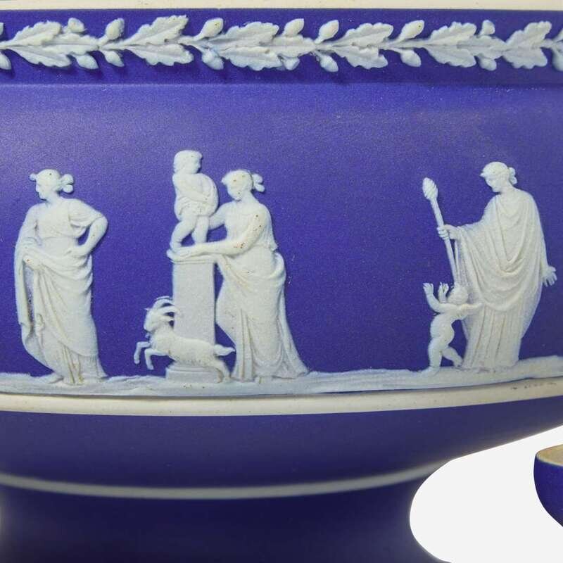 A collection of nine Wedgwood blue jasperware tablewares England, late 19th / early 20th century
