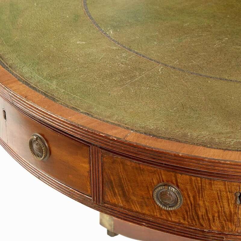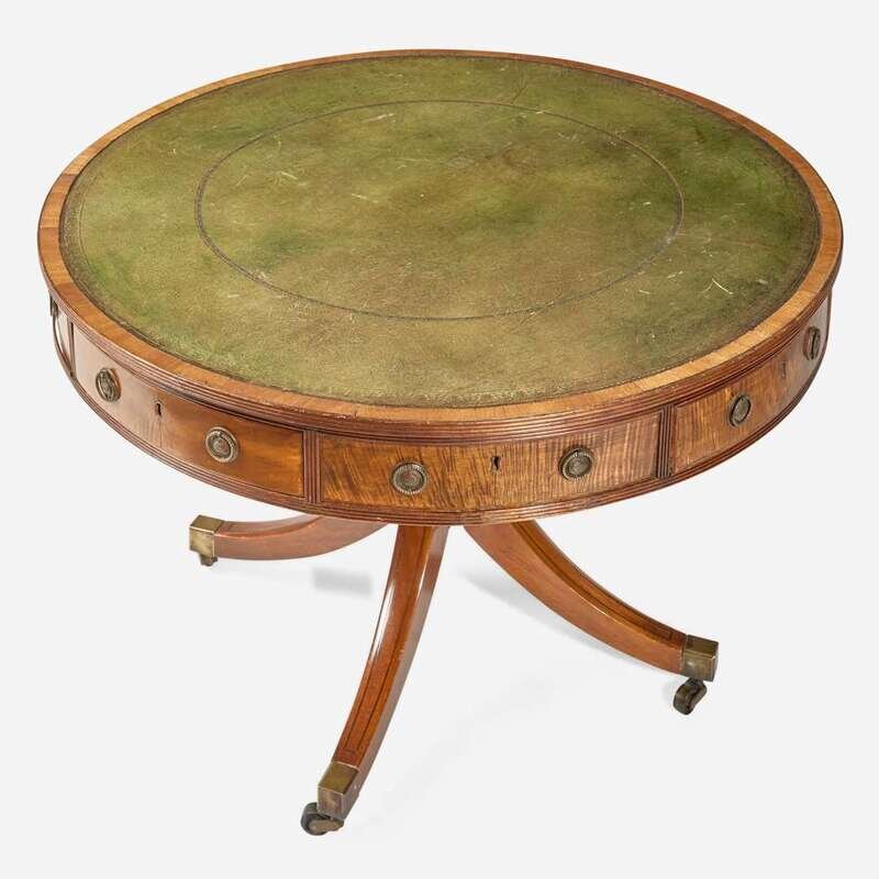 A Regency mahogany and satinwood drum center table circa 1810