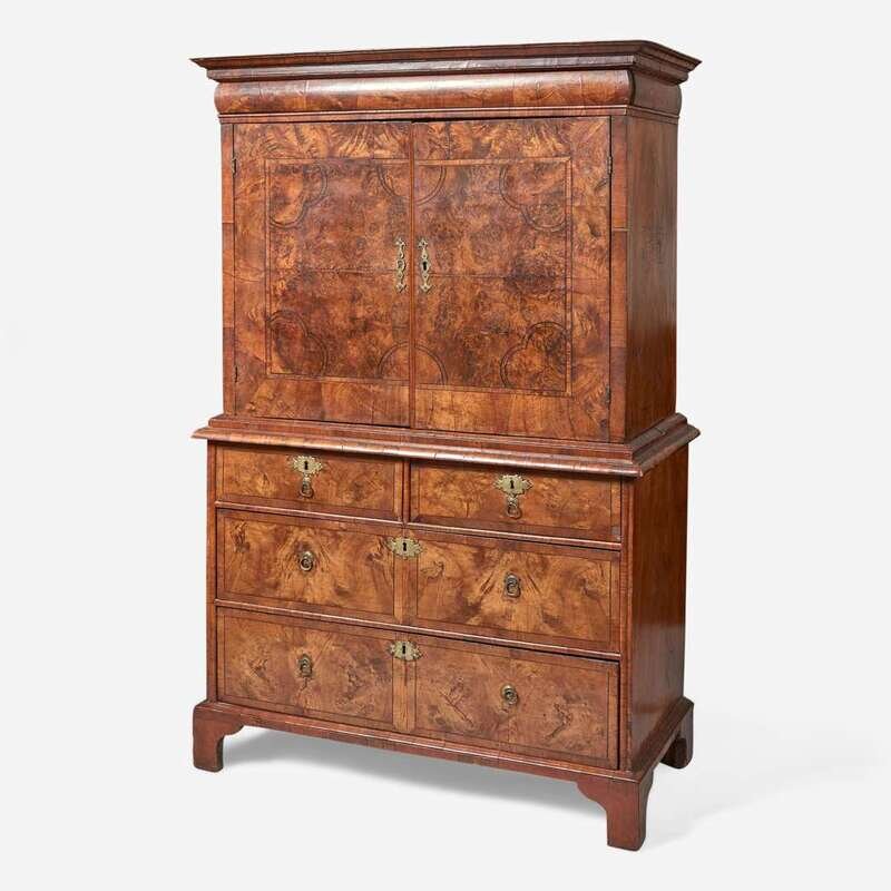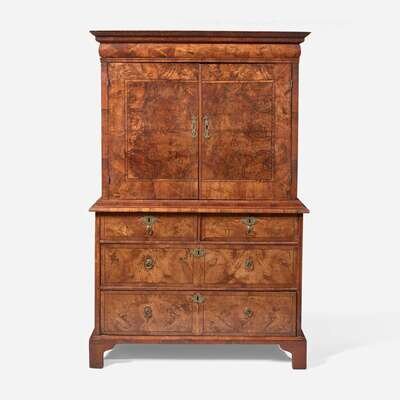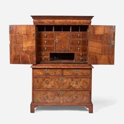 A William & Mary oyster veneered walnut secretary bookcase circa 1700