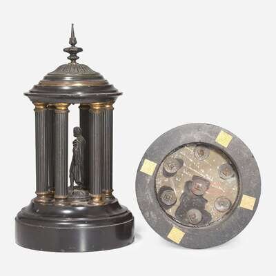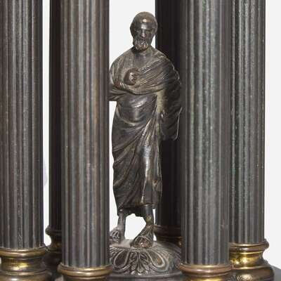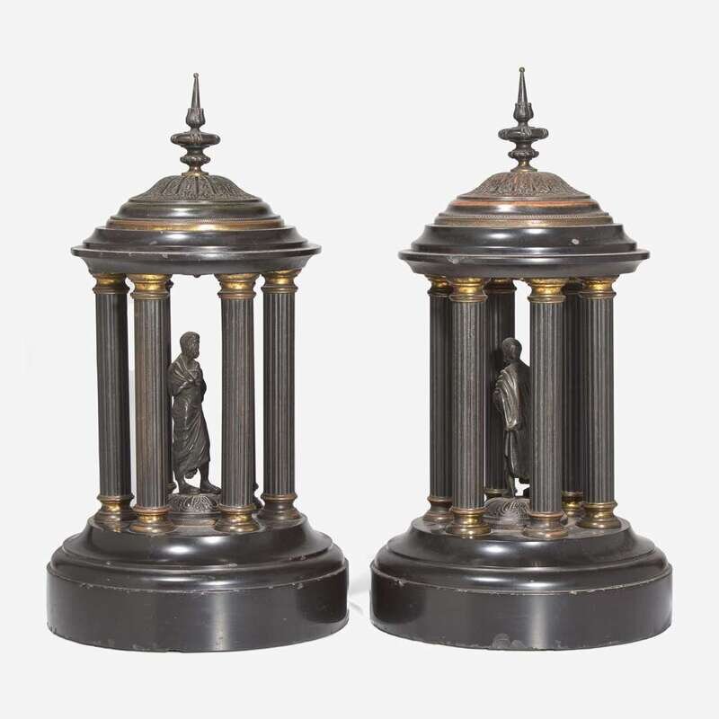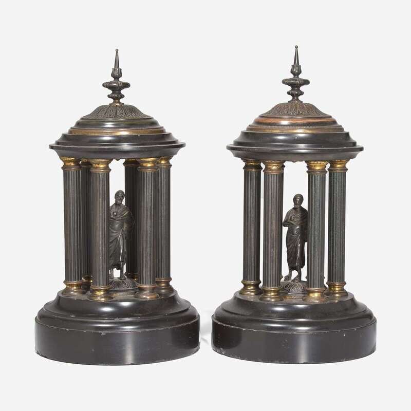 A pair of Grand Tour patinated bronze and marble tempietto late 19th century