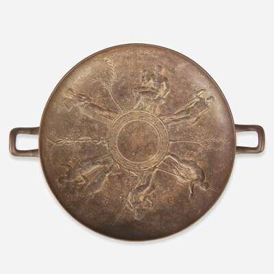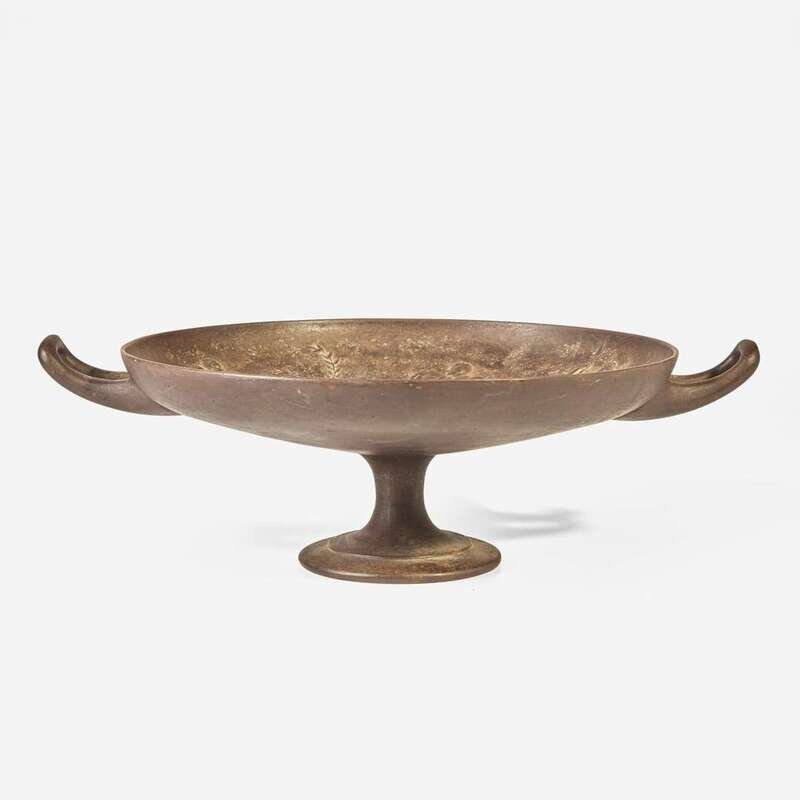 A Victorian Greek Revival cast iron kylix After the original by Edward William Wyon (English, 1811-1885), produced by Art Union of London, dated "1851"